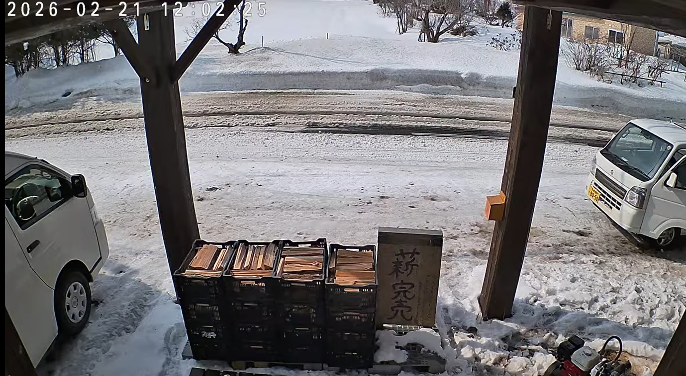 店頭の薪の在庫を確認するためカメラを設置しました。